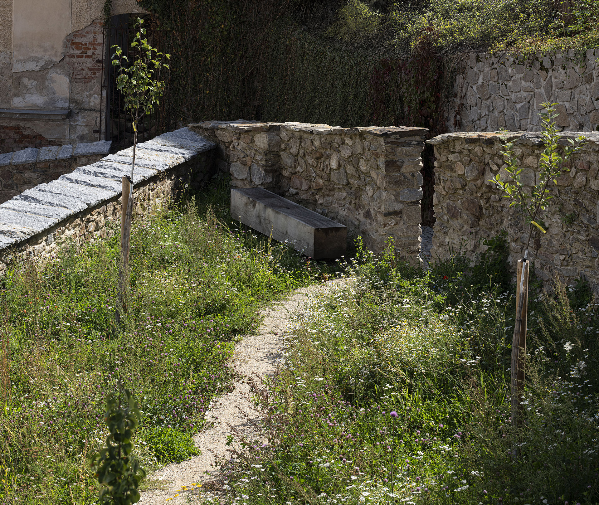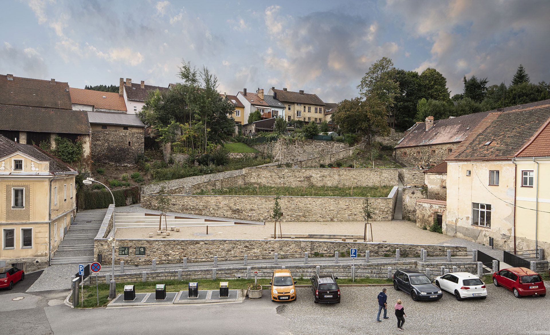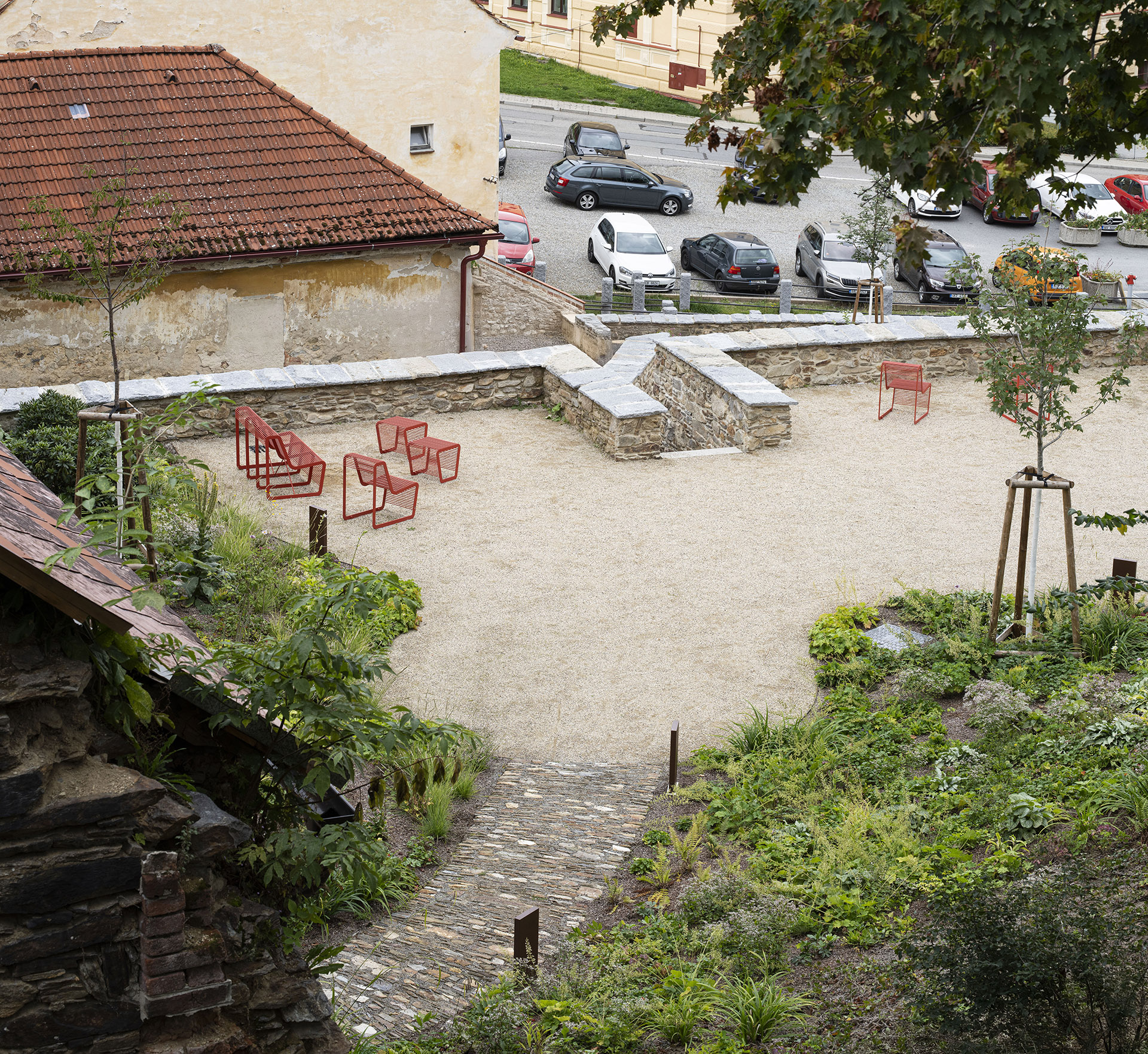 Další zásahy vycházejí z podrobné analýzy historie místa a odkrývání dálkových či sousedních vizuálních kontextu pivovarských teras. Z historických fotografií jsme si potvrdili, že terasy byly zahradami za vysokými zdmi, které byly přístupné průchody v těchto zdech. Tak trochu Trnkova zahrada. Po konzultaci s odborníkem na staré zdivo jsme se rozhodli co nejvíce geometrii zdí navrátit do původního stavu ovšem s ohledem na vytvoření obyvatelnosti teras pro užívaní veřejnosti. Zeď ke zlaté stezce je vysoká a tím potvrzujeme původní uzavřený průchod městem. Na horní tři terasy pak vstupujeme průchody. U první nejníže položené terasy již vstup více otvíráme. Tuto terasu obnovujeme do původní půdorysné stopy. Rytmus pivovarských teras je tak znovu kompletní.